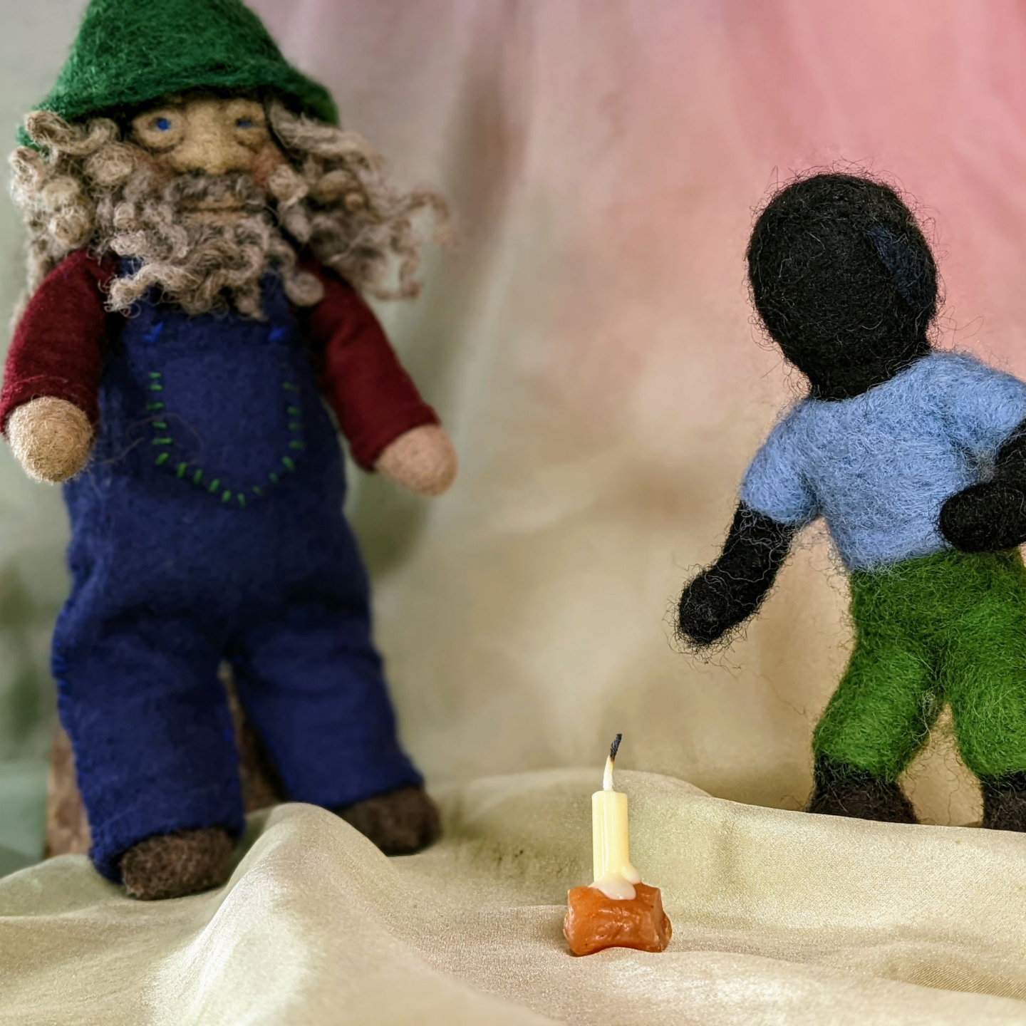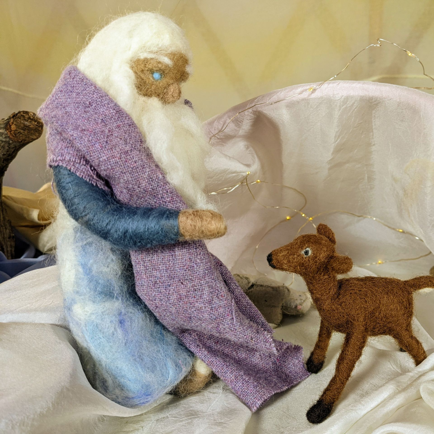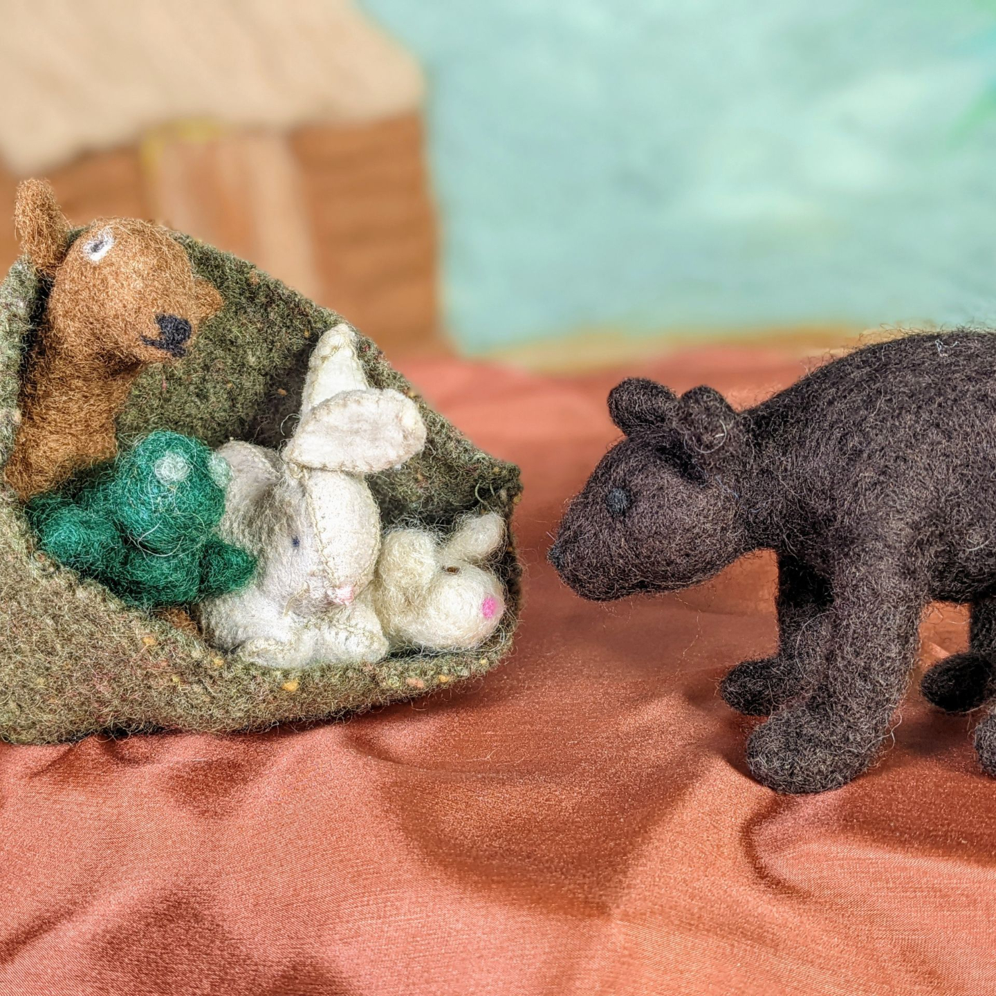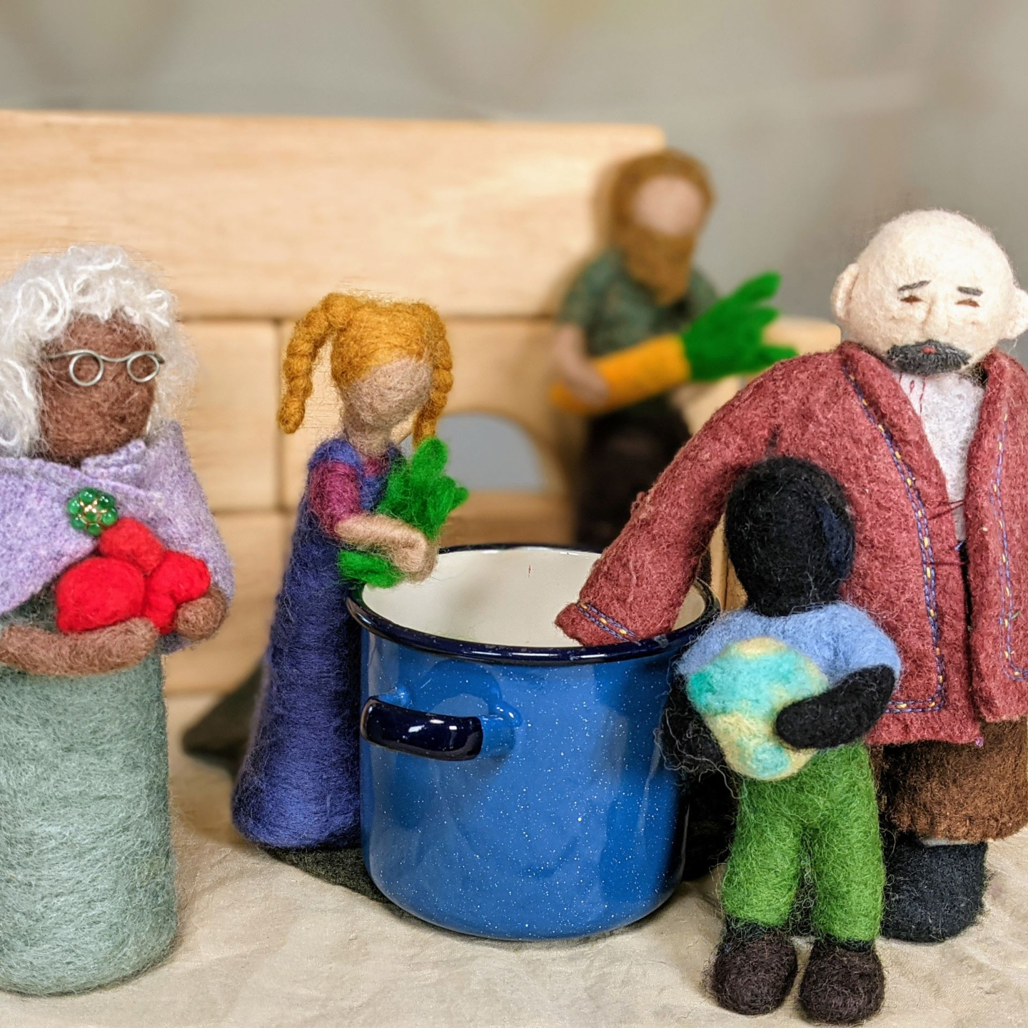 Grandpa Ivy collects wool from the sheep and wet-felts a small blanket for a mouse friend.